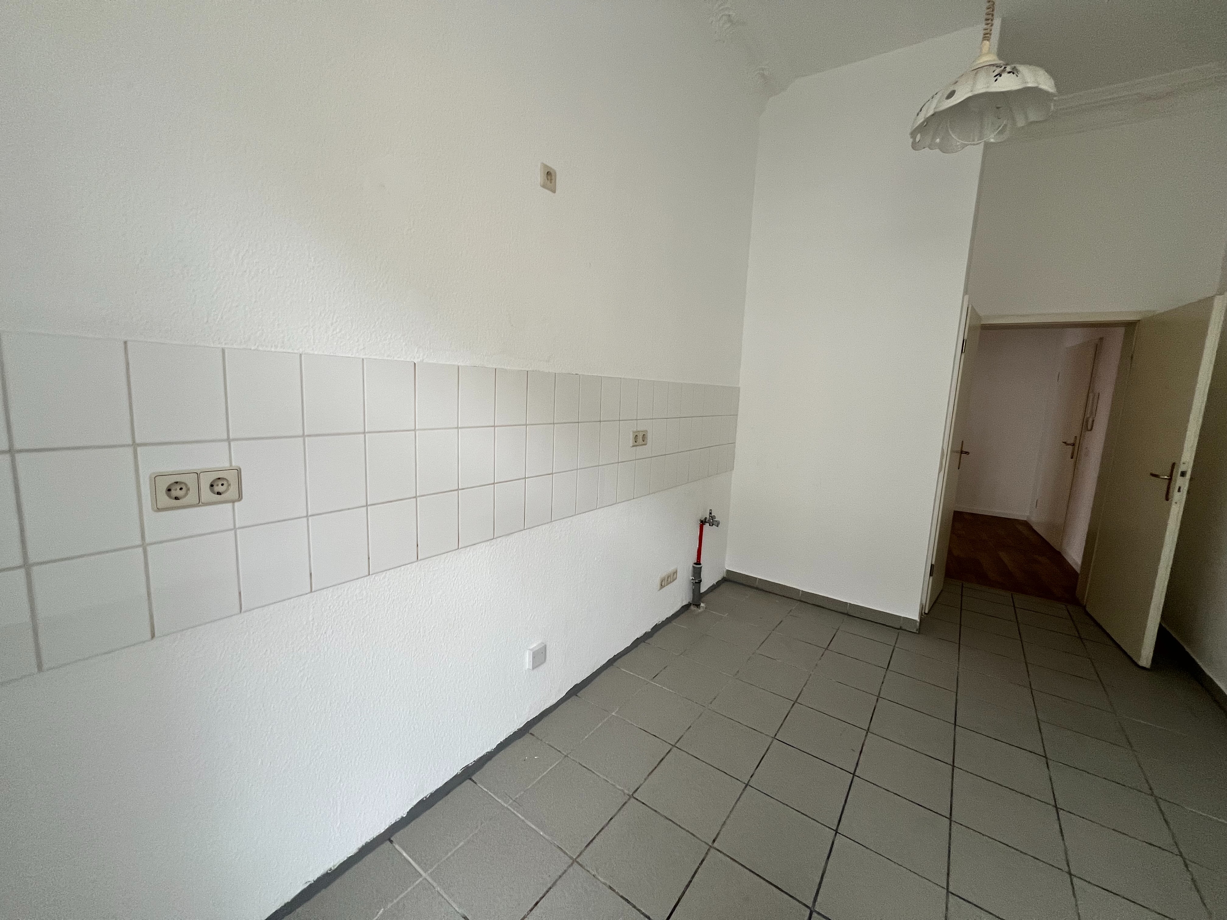Die Wohnung verfügt über zwei gut geschnittene Zimmer, darunter ein ruhiges Schlafzimmer, ein großes Wohnzimmer sowie ein Badezimmer. Großzügige Fenster sorgen für helle, lichtdurchflutete Räume und eine freundliche Wohnatmosphäre. Hohe Decken und dekorative Stuckelemente unterstreichen den klassischen Altbaucharme und verleihen den Räumen eine besondere Eleganz. Die durchdachte Raumaufteilung bietet vielseitige Gestaltungsmöglichkeiten für individuelle Wohnideen.